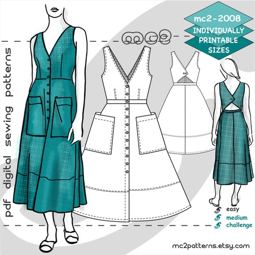 Uk 6 20 Us 2 16 Dress Button Front Cutout Back Digital Pdf Etsy